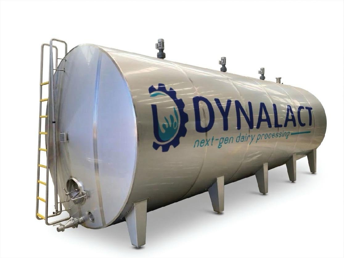 The tank stores milk under controlled conditions, allowing smooth flow to processing lines while preventing contamination and temperature loss.